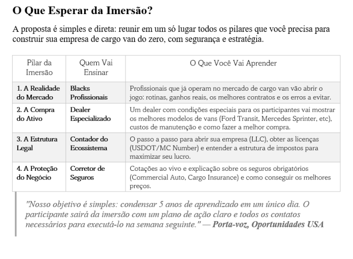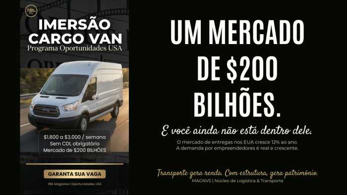 Para responder a essa pergunta de forma definitiva, o programa Oportunidades USA, em uma aliança estratégica com o ecossistema MAGNVS e a RBL Magazine, anuncia a Imersão Cargo Van, um evento transformador, desenhado para ser o mapa completo da sua jornada neste mercado.